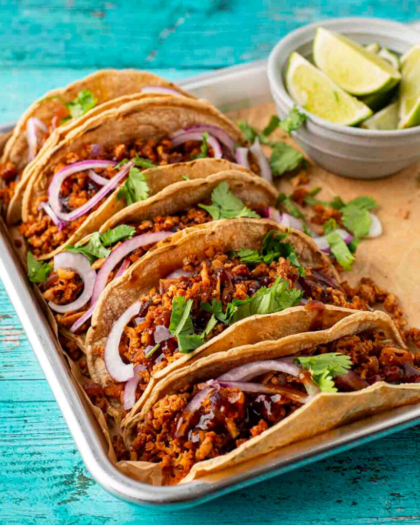 If tofu still scares you, this recipe is your intervention. Shredded tofu absorbs flavor like a sponge and turns into something shockingly hearty. Toss it in BBQ sauce, load it into tortillas, and suddenly, tofu isn't weird anymore. This is one of my favorite easy vegan taco recipes for family dinners, meal prep, and feeding meat-eaters without having to explain yourself. Top with slaw, beans, or leftover veggies and move on with your life.