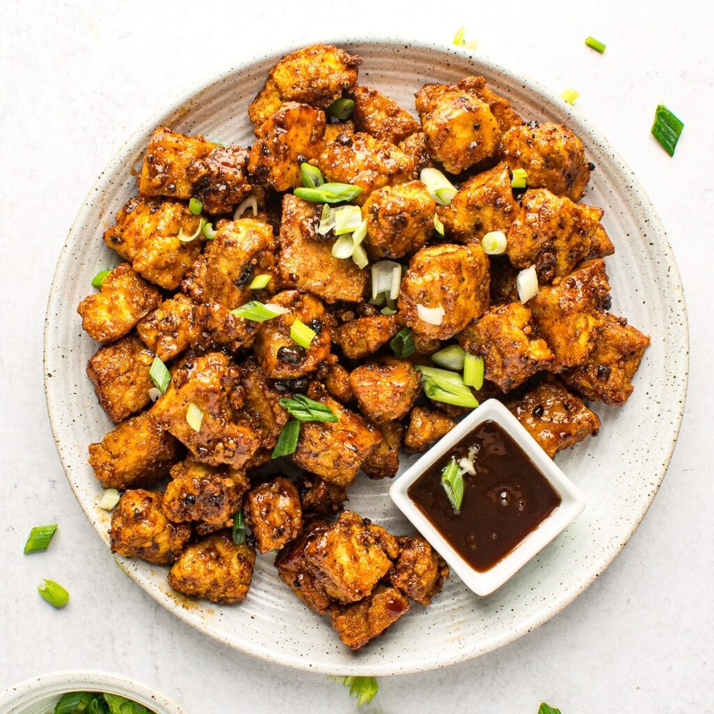 Crispy Air Fryer Tofu Nuggets with Sticky BBQ Maple Glaze