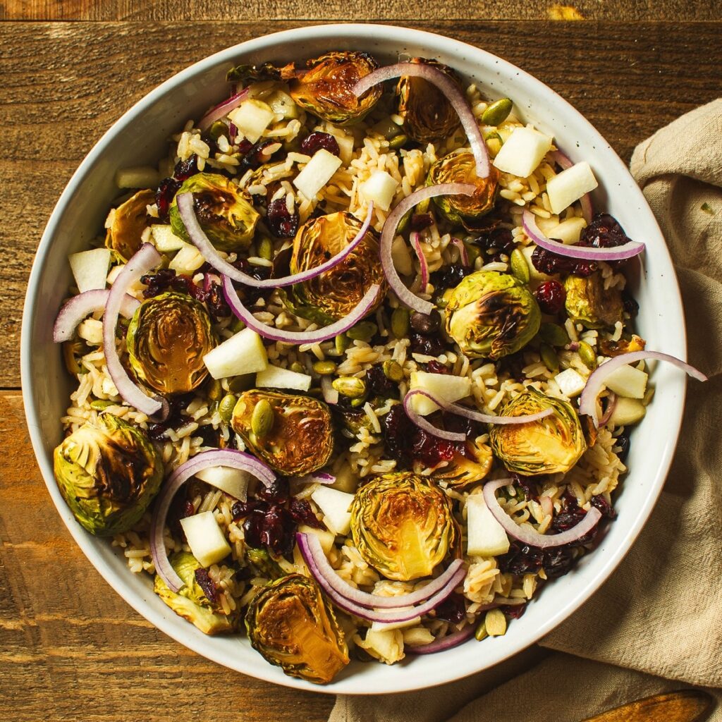 Roasted Brussels Sprouts & Pear Salad With Brown Rice